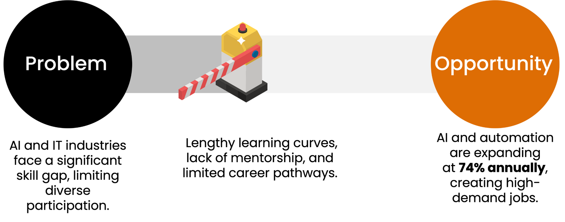 We will leverage AI to short-circuit the learning curve for our trainees, assisted by experts in communications, AI and experts from India, USA, and Singapore to enable a platform where individuals will learn, train, certify themselves. We will use a period of co-investment to get them exposure to industry use cases and problem statements. Individuals will work on real situations and implement solutions enabling faster transition/onboarding and increased productivity in the roles they seek growth in.